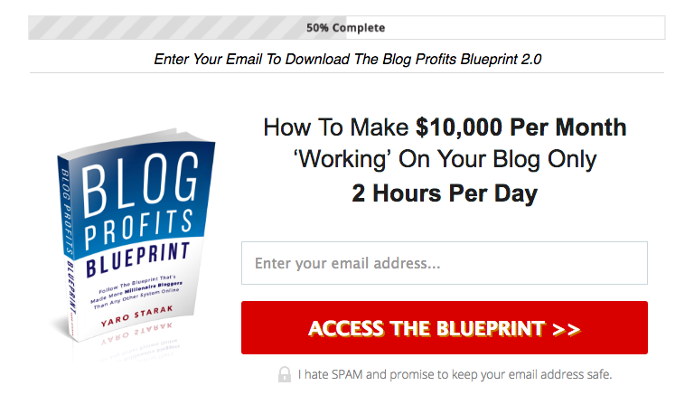 Yaro claims that over 150,000 people have already downloaded it. Yep, that’s a solid email list alright! But it doesn’t stop there…let’s consider the value equation of this technique; when you compare the minimal production costs of an eBook, it is often a particularly economical vehicle for growing an email list. In most cases, each high-quality email subscriber can be worth at least $1-$2 to a business, if not more. When considering Yaro’s case, he may have spent $1,000-$2,000 in the production of his eBook, however yielding 150,000 subscribers means he has derived $300,000 in business value. Not a bad return on investment, hey! More often than not, eBooks can be a no-brainer for lead generation when you look at them from this perspective.