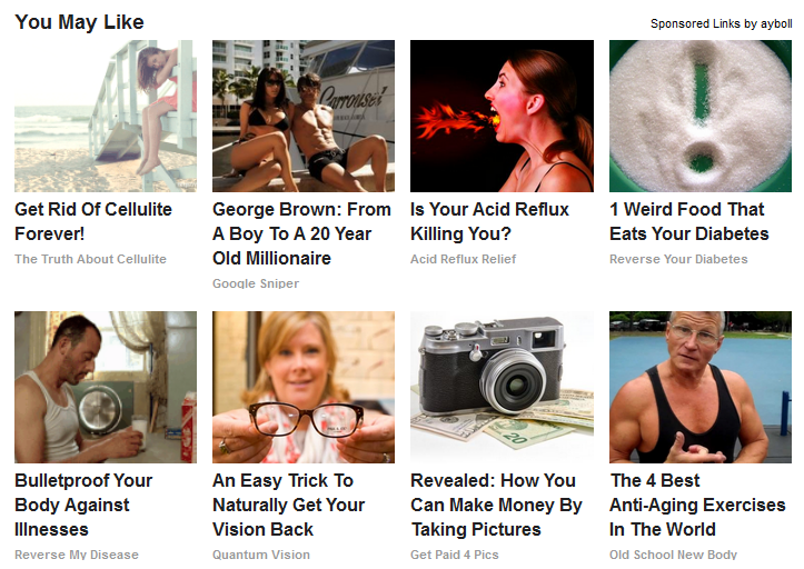 Outbrain, Taboola and Adblade are the leading native advertising networks. They pay their publishers handsomely (often of 25c per ad click in the publishers’ pocket) and have high click-through rates in comparison to other ad formats mentioned in this article. However there is a catch that I must share with you before you get too excited and quit your day job!