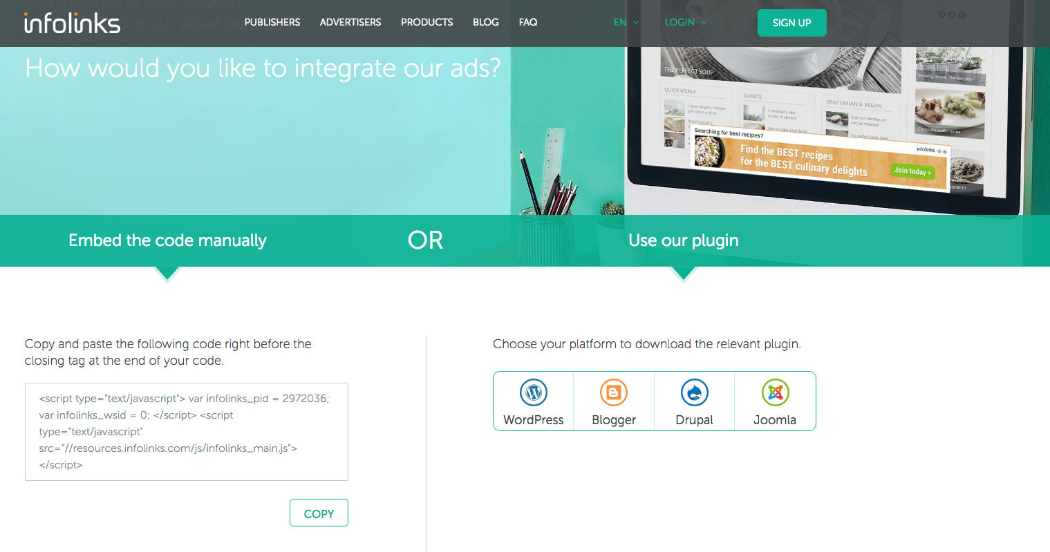 The setup process for Infolinks is super fast and straightforward. I’d recommend trialling this platform vs Chitika (not at the same time, one month of each) and then choosing the winner of this trial for the long-term.