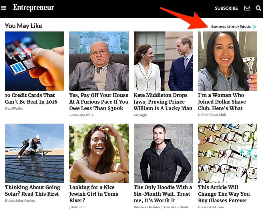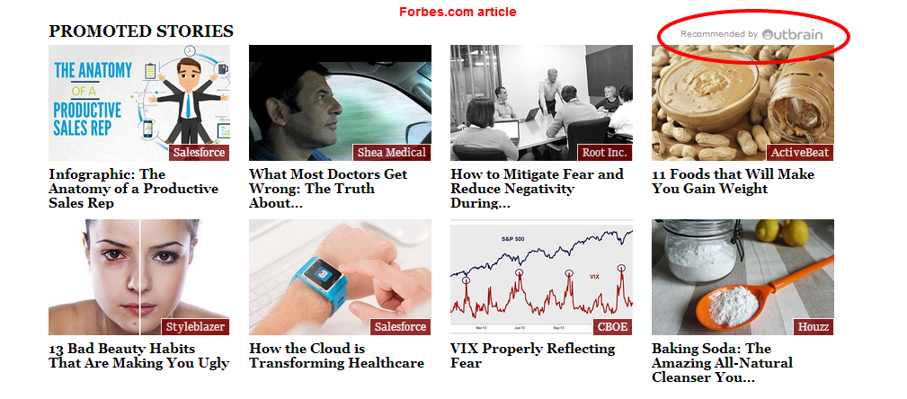 The catch is related to the minimum traffic requirements for all three of these native ad networks. Outbrain, Taboola and Adblade require your blog to attract at least 500,000 pageviews every month before they will welcome you to their publisher network. This is why you will typically see the big publishers like Time magazine, Forbes and Entreprenur.com displaying these types of ads, and not the ‘little guys’.