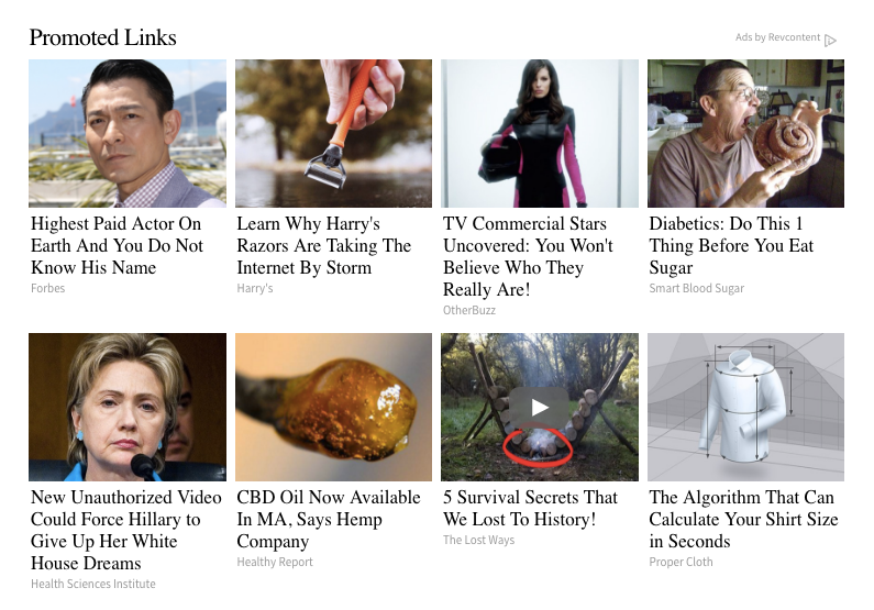 Mgid offers a couple of fundamental two major advertising options, the first of which consists of progressive display ad formats (such as rich media display ads, obviously not the focus of this analysis). The second ad format offered by MGID (and obviously more pertinent) is the ad format designed in the words of MGID to ‘re-circulate visitors’. This more frequently known as MGID’s ‘Promoted Content’ widget.