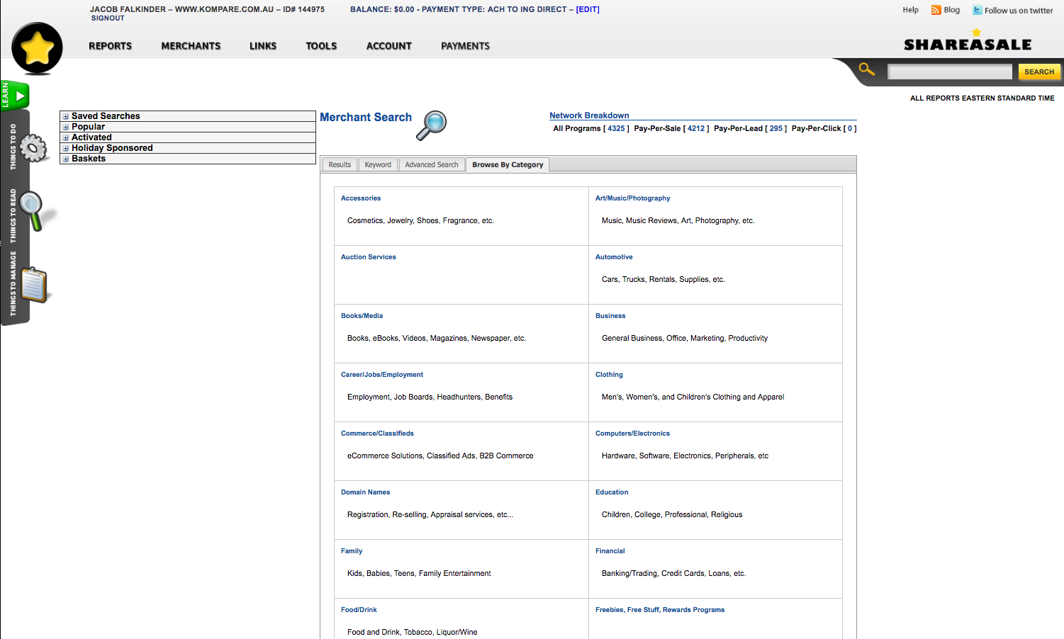 Shareasale’s merchants (i.e. the companies that sell their products through Shareasale) skew towards the technology sector, but they span a lot further too. Here’s a sample of their leading categories and merchants: